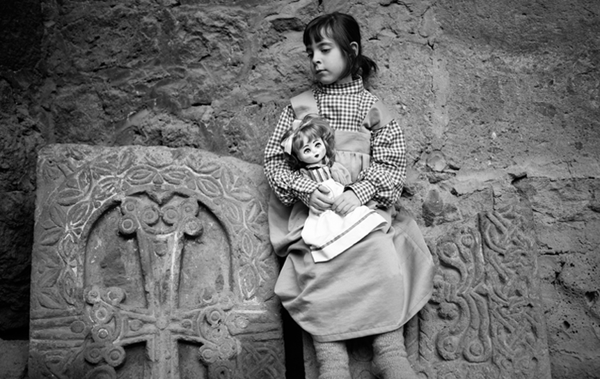 “Red Hail… because it never ends” the video art installation was created as a result of interaction between children’s photographyentitled “Some of Our Little Girls with Their Dolls” taken by Norwegian missionary Bodil Biørn in the Western Armenia in 1910 and a “New Flower” resurrection tagh (solemn hymn originally created by St. Nerses Shnorhali in the 12th) given a fresh and attractively youthful representation of the Armenian sacred music by Tigran Hamasyan created in 2015.